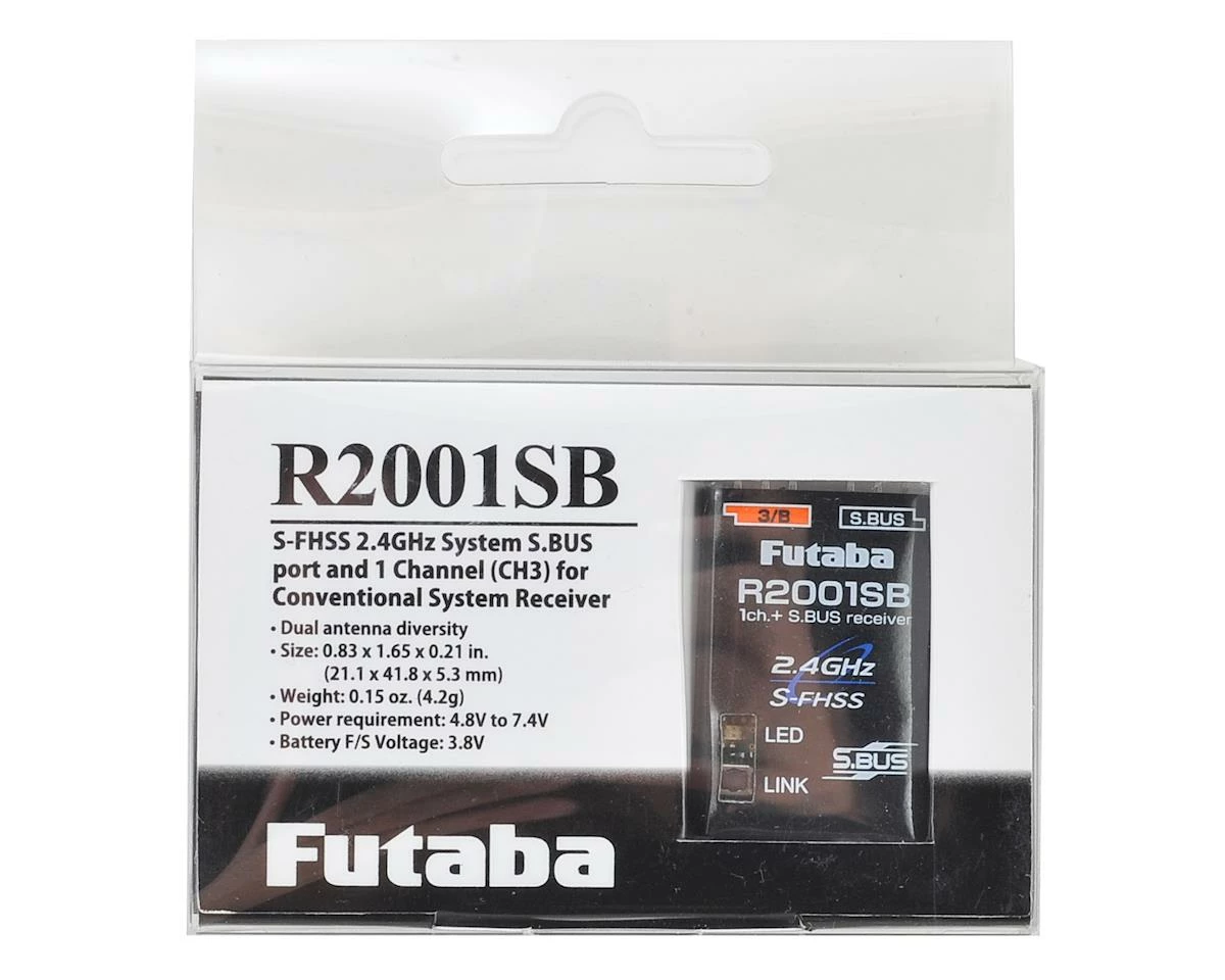 This is a Futaba 2.4GHz R2001SB SFHSS S.BUS HV Receiver. The smallest, lightest full-range Futaba receiver ever, weighing in at 4.2 grams, but is also an S.Bus powerhouse guaranteed to take your FPV flights to the max. Link it with one of four Futaba S-FHSS radios with multicopter function for unparalleled reliability, programming and innovation. This receiver can additionally be used in micro helicopters with 380mm main blades or smaller providing ease to mount the receiver thanks to it’s small size.