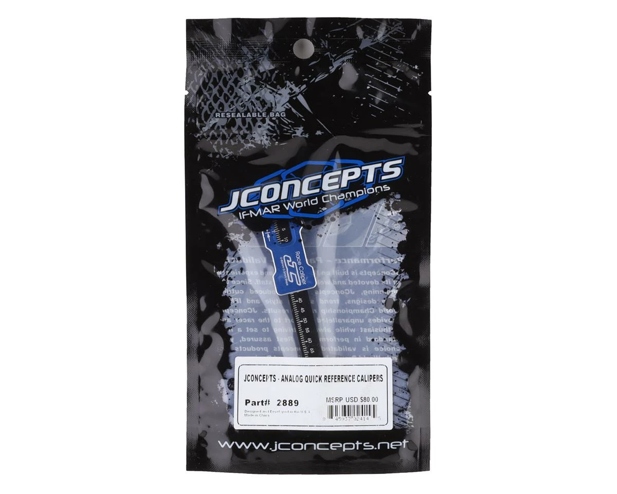 JConcepts Analog Quick Reference Calipers allow users to reference dimensions quickly. Racers have asked over and over for a small footprint item that is able to measure small spaces accurately and quickly. The quick reference calipers are analog based and capable to be locked into place to secure or save dimensions for later or to copy side-to-side. The all-aluminum built and anodized item, built from 4 pieces, is a very technical and precise piece.